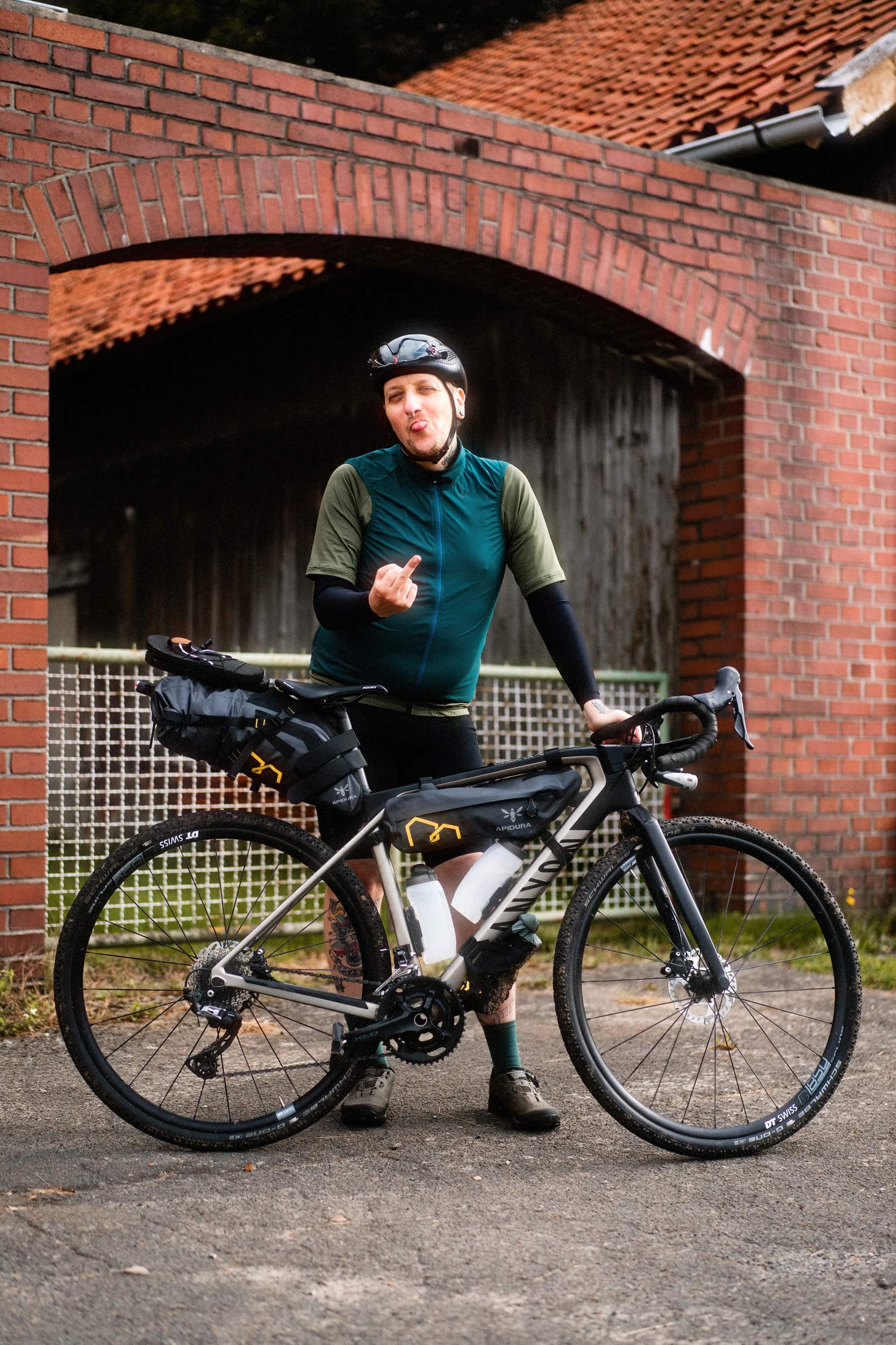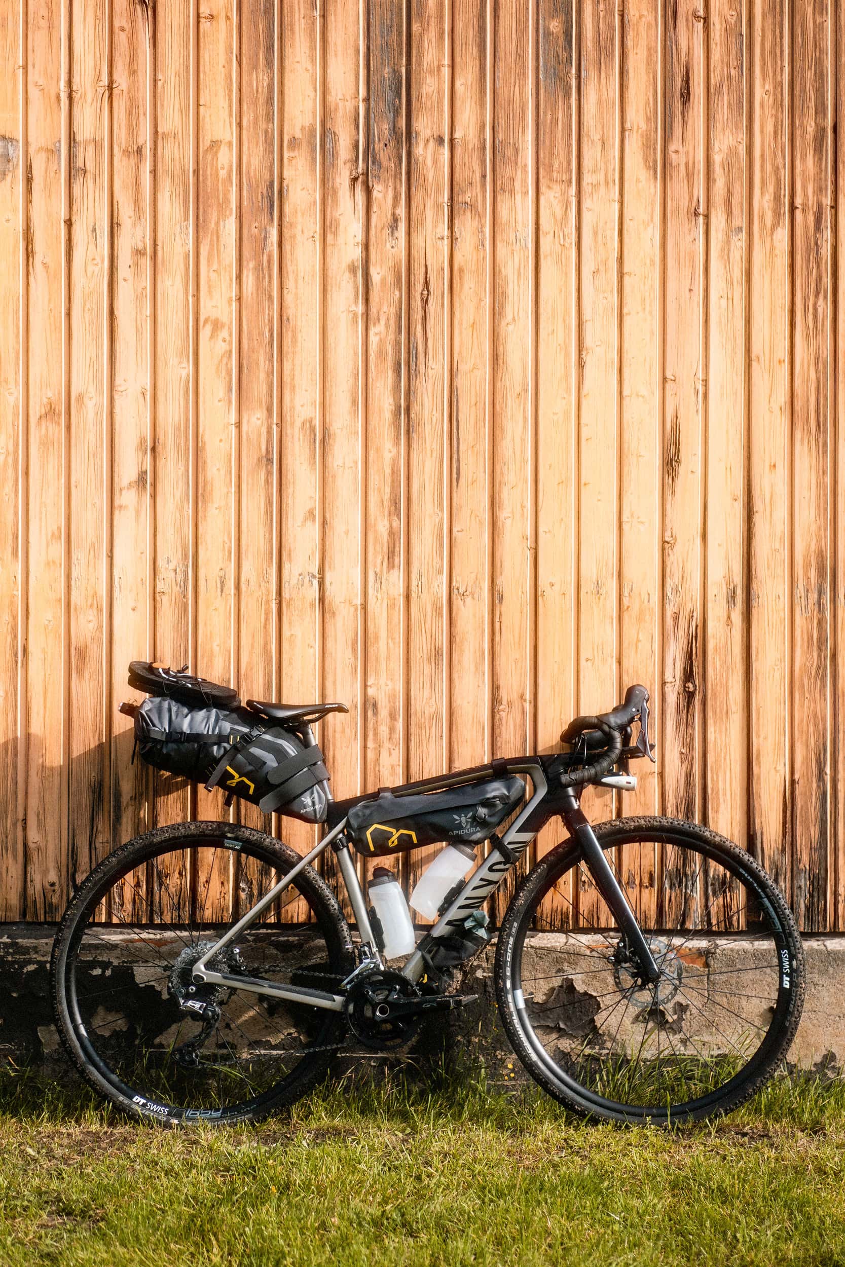 In the end, we settled on a mix of bags that seemed to promise enough space without overburdening our bikes. For Jana, with her bike’s generous attachment points, it was a combination of a large frame bag and saddle pack, supplemented by a top tube pack and a food pouch for easy snack access. Björn, navigating the Grail’s more limited attachment options, opted for a more streamlined setup with a frame pack and saddle pack, plus a down tube pack for those extra bits and pieces.