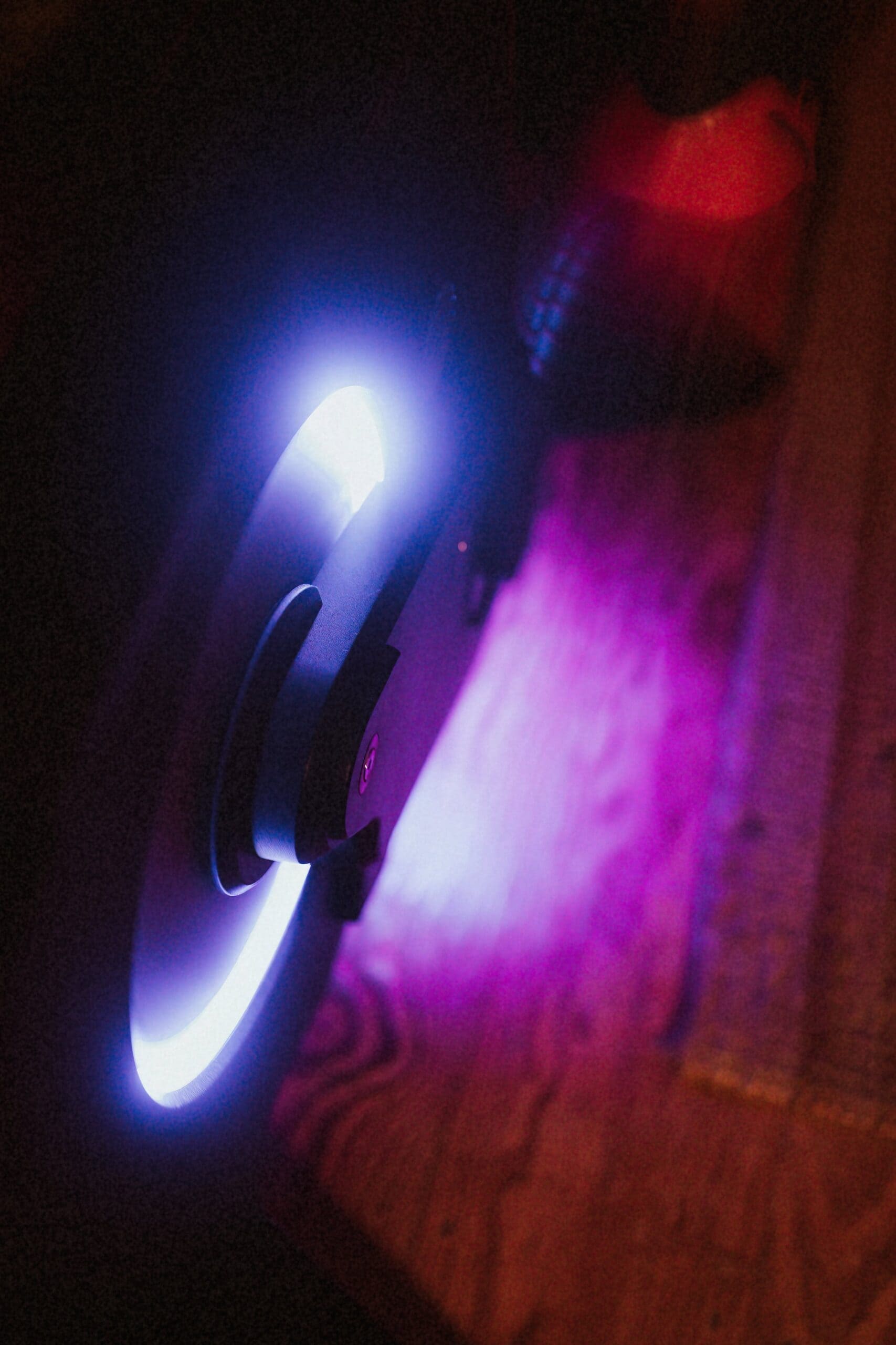 The front of the bike has the bike console with the display and a small tray for your cell phone, food or other things. Inside the flywheel there are lights that light up when you pedal, for a little bit of disco feeling ...